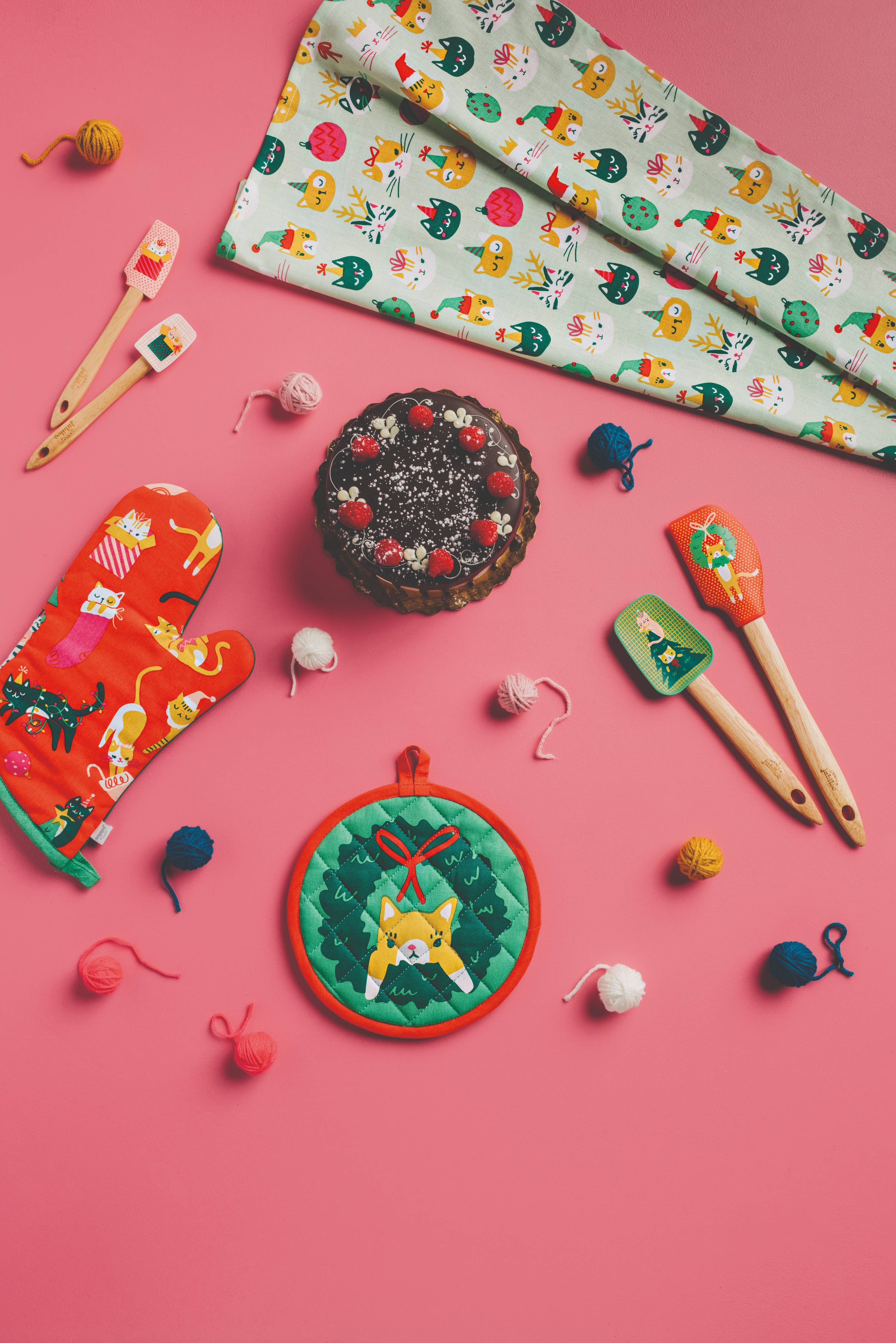 This quilted potholder spins a yarn of cute kitties who are up to some mischievous merry-making. Machine washable, this heat-resistant potholder helps home cooks keep...
