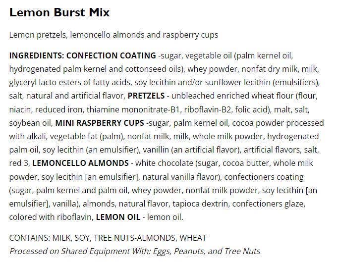Pucker up for pure joy! Our Lemon Burst pretzel mix delivers a zesty trio of lemon-flavored pretzels, tangy lemoncello almonds, and decadent mini chocolate raspberry...